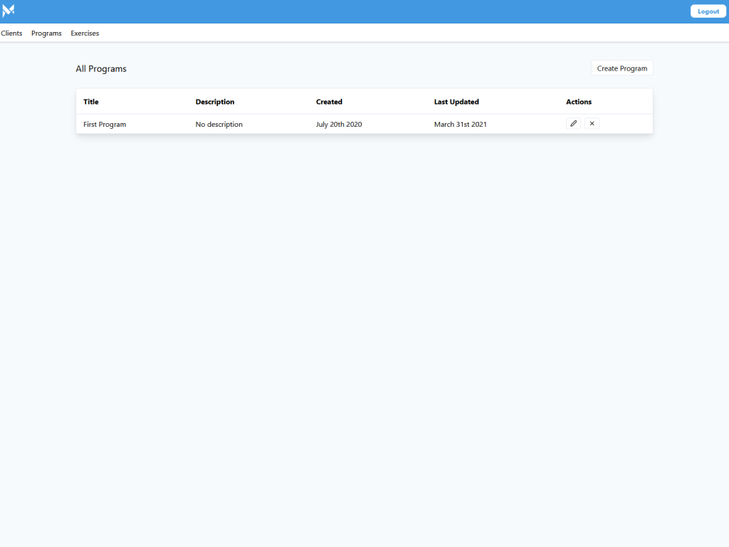 The application allows personal trainers to create programs to assign to their clients. Originally created in Vue but migrated to React. The backend is written in Django. At the time of creating the application, I went for a NoSQL approach. If I was to recreate this now, I would 100% use a relational database to make managing records much easier. It would keep everything properly in sync.
