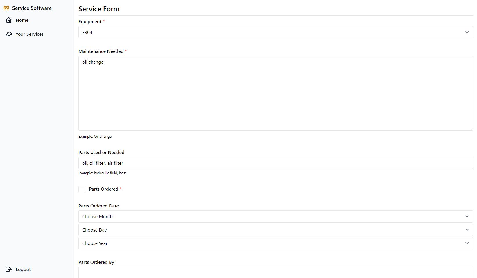 Project created for services done on equipment. This was done with Django allowing the manager to add new equipment and view entries on the admin dashboard. Employees that create an entry are only able to view and update their own entries.